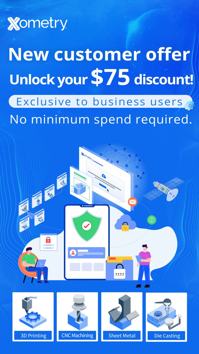 Discover a smarter, faster way to source custom parts in just a few clicks. As a new corporate user, you’ll enjoy $75 off your first order—with no minimum spend required.